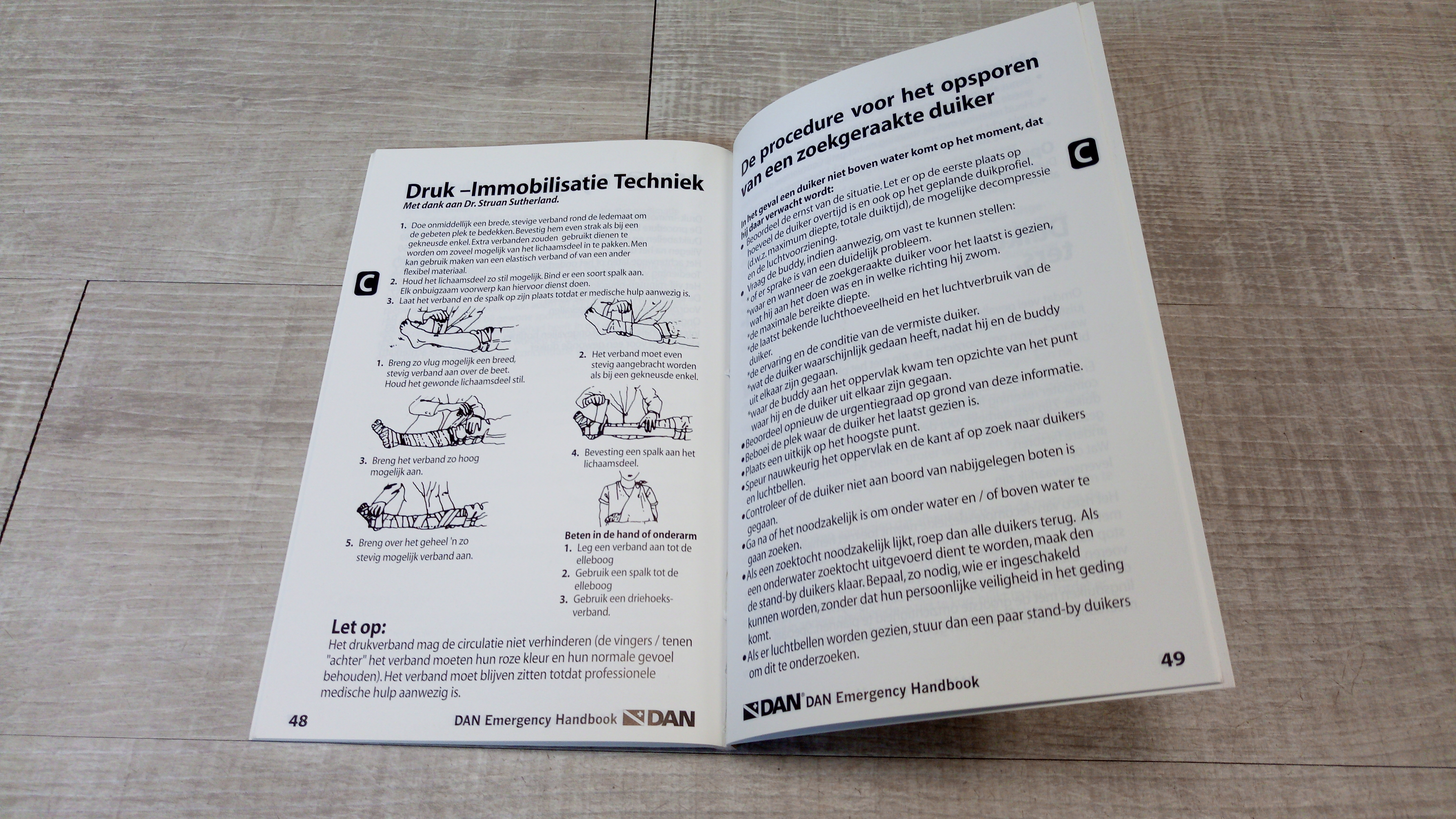 Daarnaast is het "DAN Emergency Handbook" een kostbare en unieke handleiding die de oplossing kan geven voor de vele kleine als ook de grote problemen, die zich bij het duiken kunnen voordoen. De op gebruiksvriendelijke wijze weergegeven informatie van deze handleiding is, hoewel in bekorte vorm, dikwijls ergens anders niet te verkrijgen en kan uitermate waardevol zijn voor duikers op de plaats van het noodgeval, alsook voor de gezondheidszorg zonder speciale ervaring in "duikgeneeskunde".
