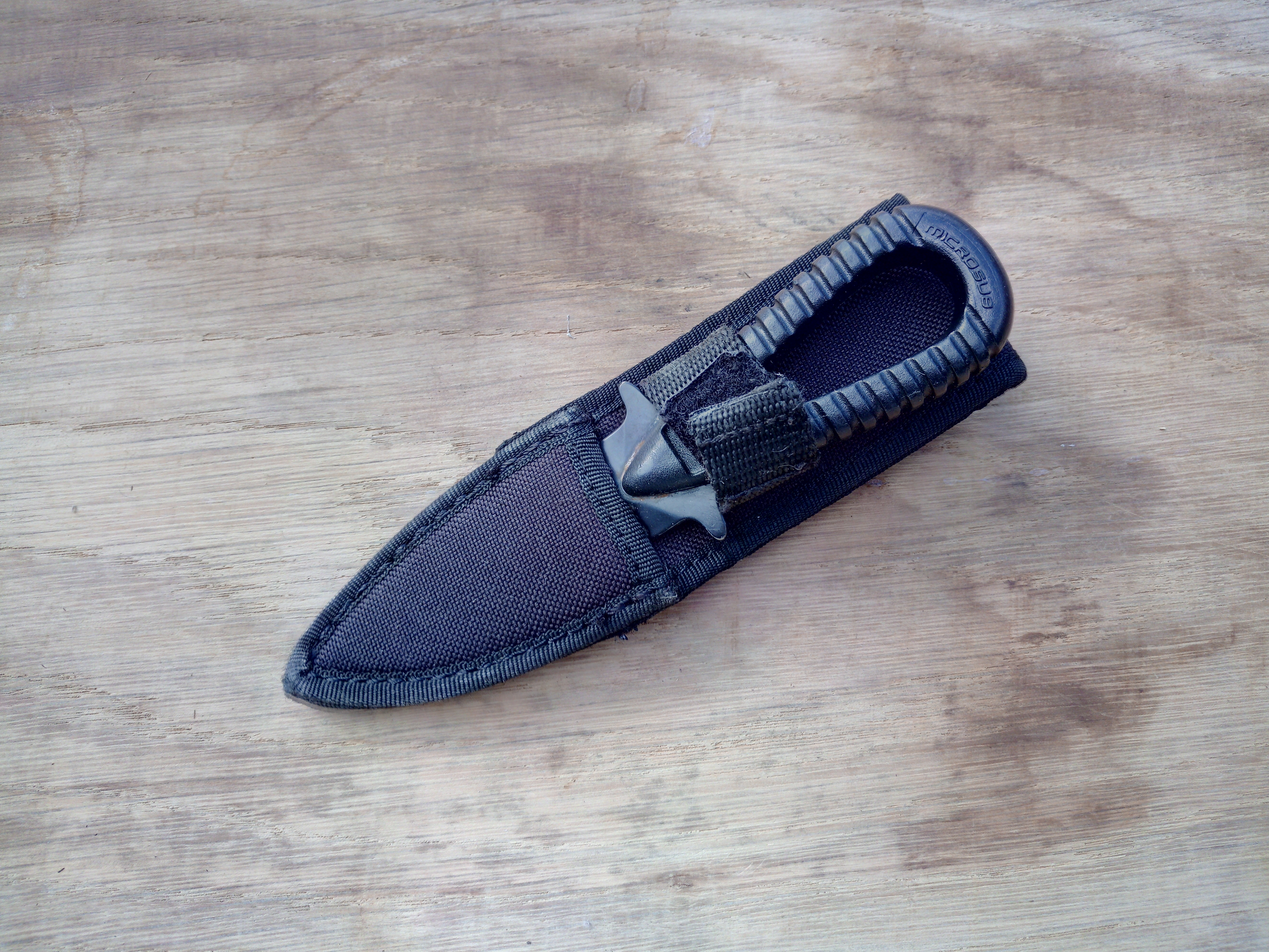 Het lemmet heeft een lengte van 6,5 cm en het handvat is ergonomisch gevormd. Dit duikmes is gebruikt en heeft gebruiks sporen!