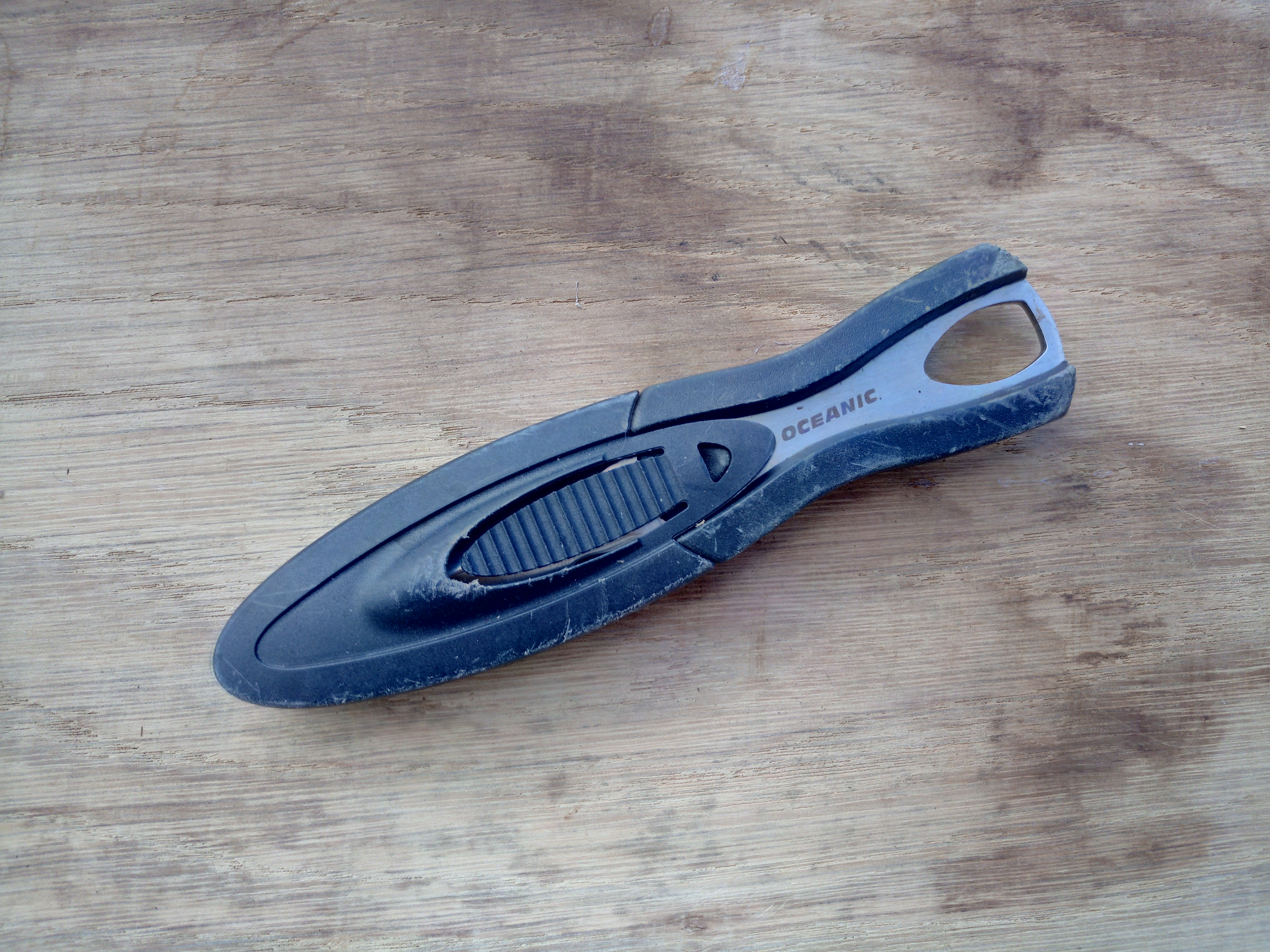 Het lemmet heeft een lengte van 6,5 cm en het handvat is ergonomisch gevormd. Dit duikmes is gebruikt en heeft gebruiks sporen!