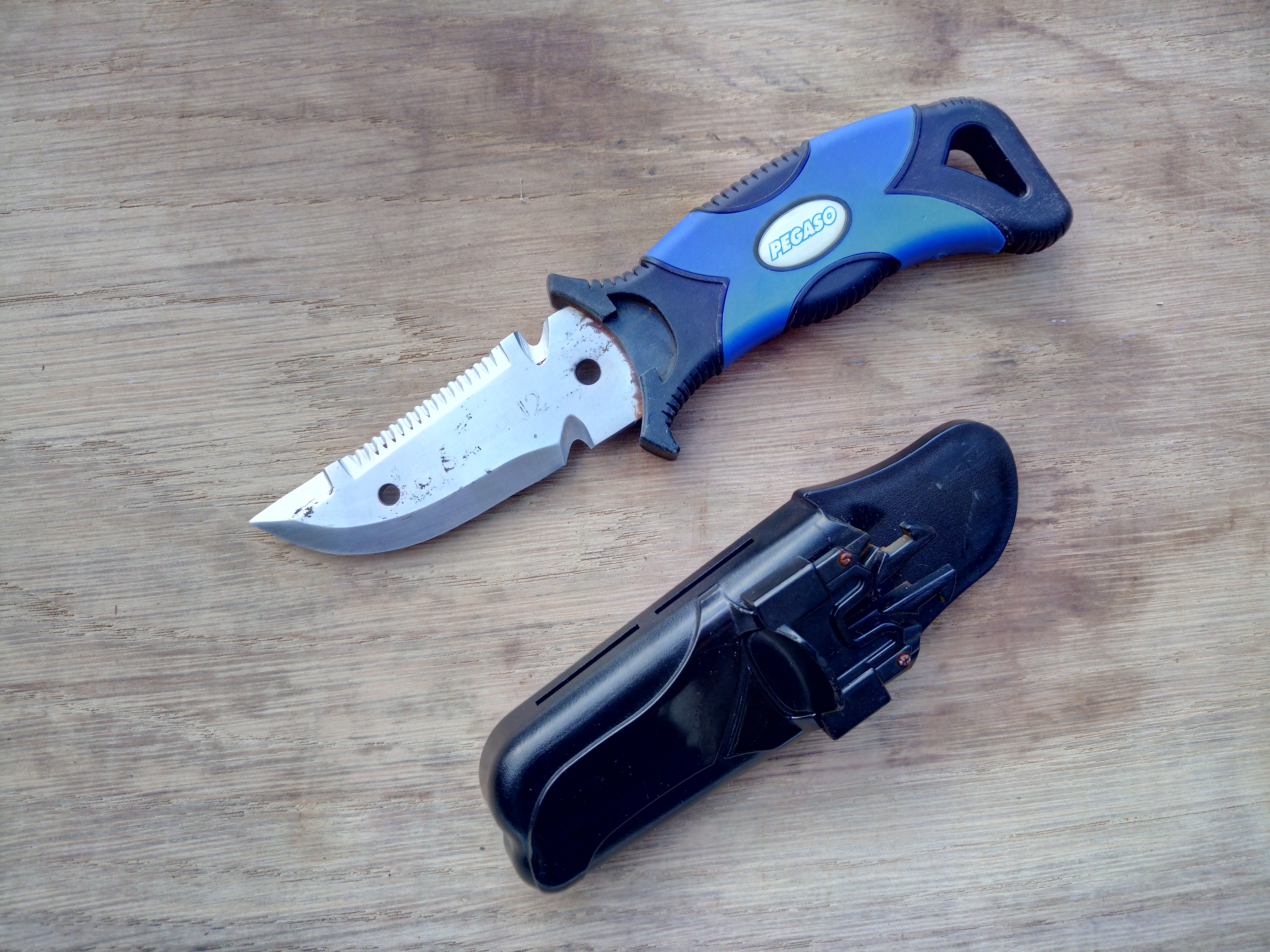 Het lemmet heeft een lengte van 7 cm en het handvat is ergonomisch gevormd. Dit duikmes is gebruikt en heeft gebruiks sporen!